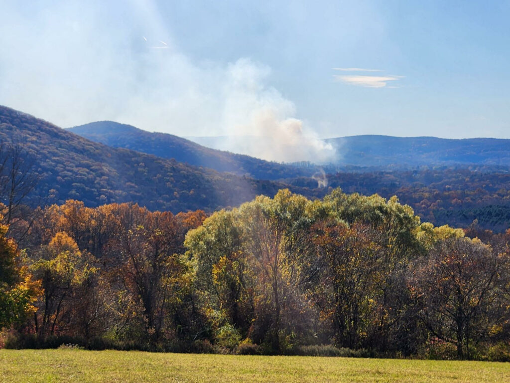 Many of you are probably aware how terribly dry it’s been here in the East this Summer and Fall. A couple of weeks ago our new Director of Communications, Sarah Chase, sent this photo of the smoke from a wildfire burning in Dover, NY, taken from the top of Spooner Hill. The fire burned for more than a week.